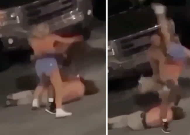 アメリカにて、男同士(彼氏?)の喧嘩を止めようとした女が一瞬で頭を地面に叩きつけられる衝撃映…