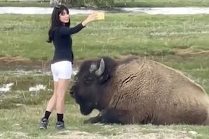 ◆【動画】命よりインスタ映え?巨大なバイソンと自撮りする馬鹿女さんが話題に。 変態の宴Ⅱ