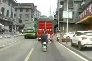 うわああ(@_@;)重そうなダンプの後輪で踏まれてさらにズルズル(@_@;)中国で恐ろしい事故に遭遇して…
