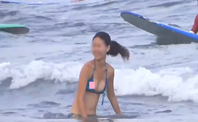 アジアのSNS上で、海水浴場の人妻が、乳首ポロリしてるのに気付かず盗撮され続ける動画が多くの人々…