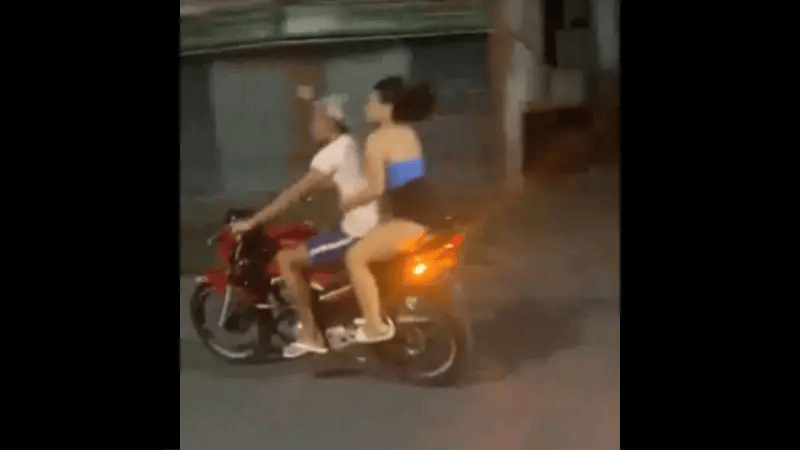 後ろに女性を乗せているバイクのライダーが調子に乗ってウィリーをしながら片手になったら、事故を…