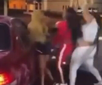 ガソリンスタンドで女たちが大乱闘 激しい戦い